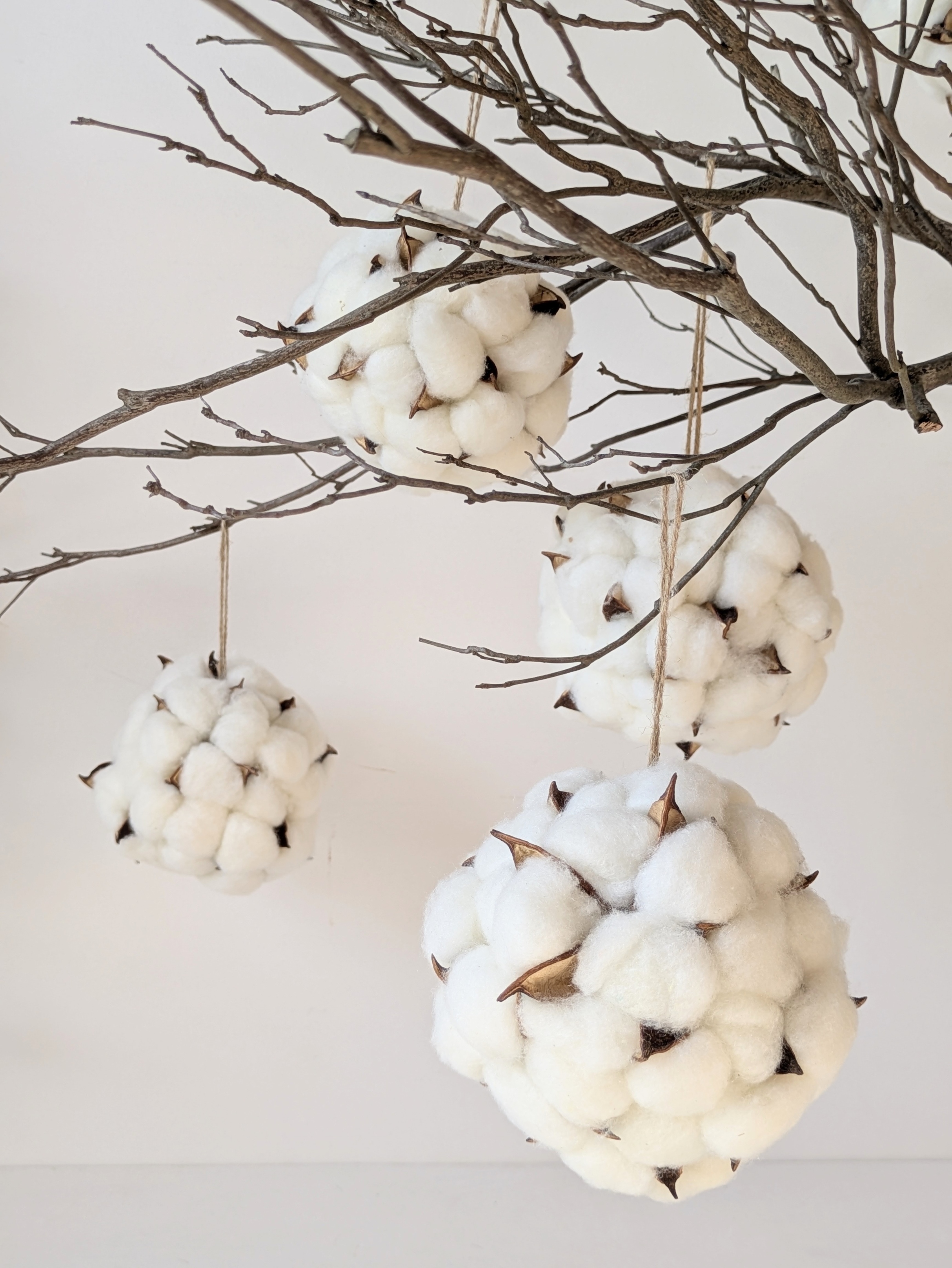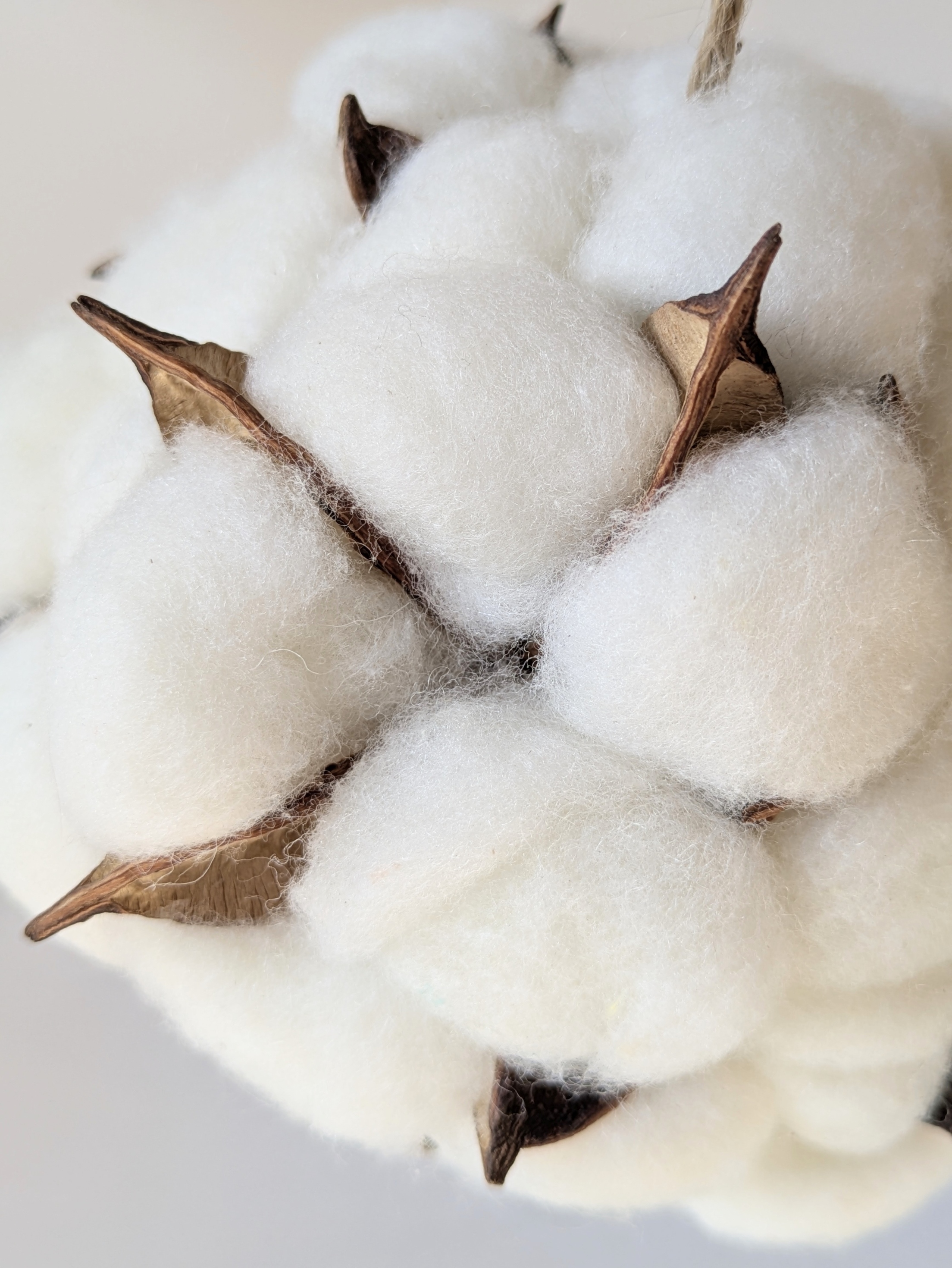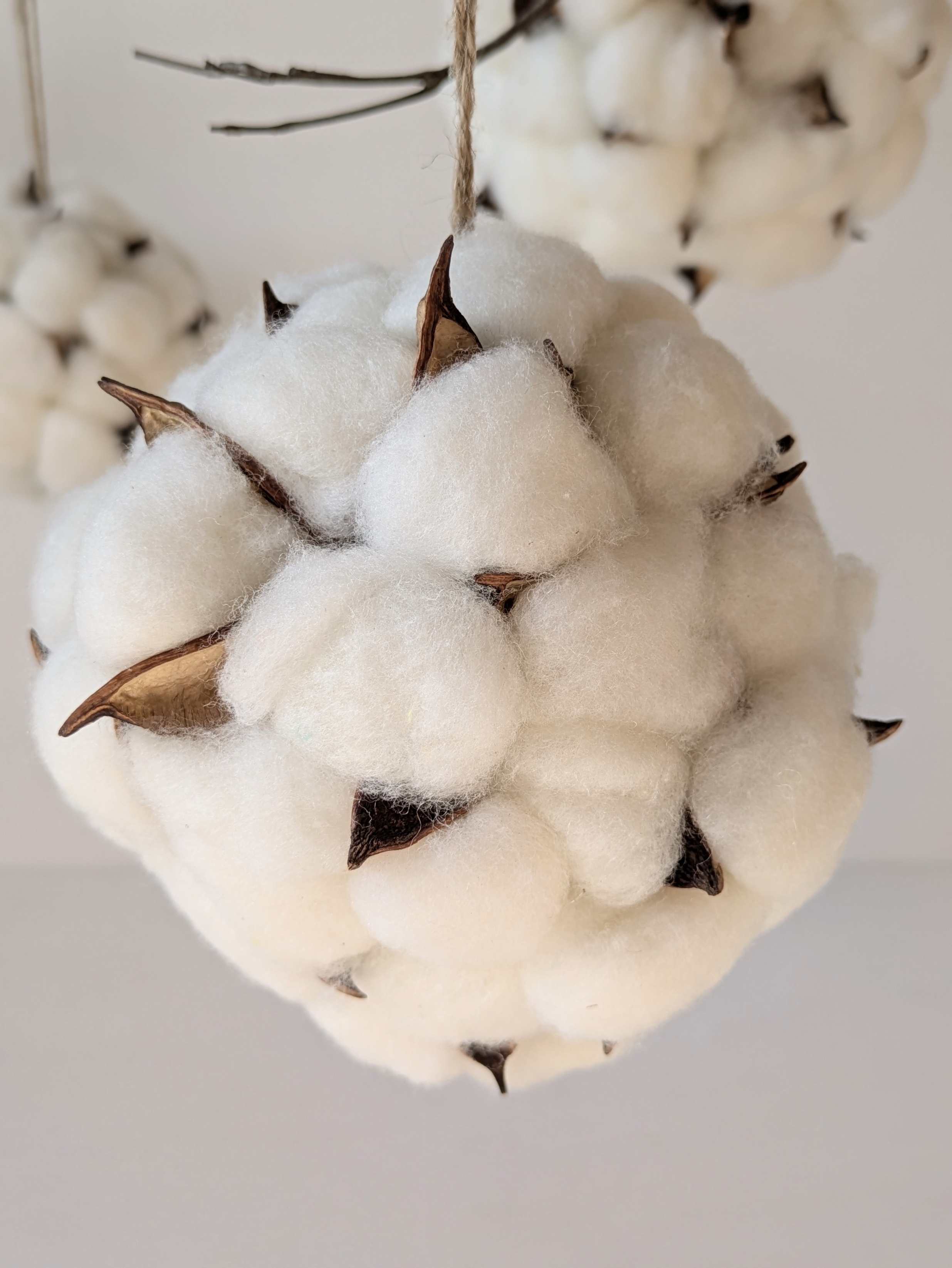 ✿ コットンフラワーを丸く束ねた、やさしい雰囲気のドライフラワー「コットンボール」をご用意しました。