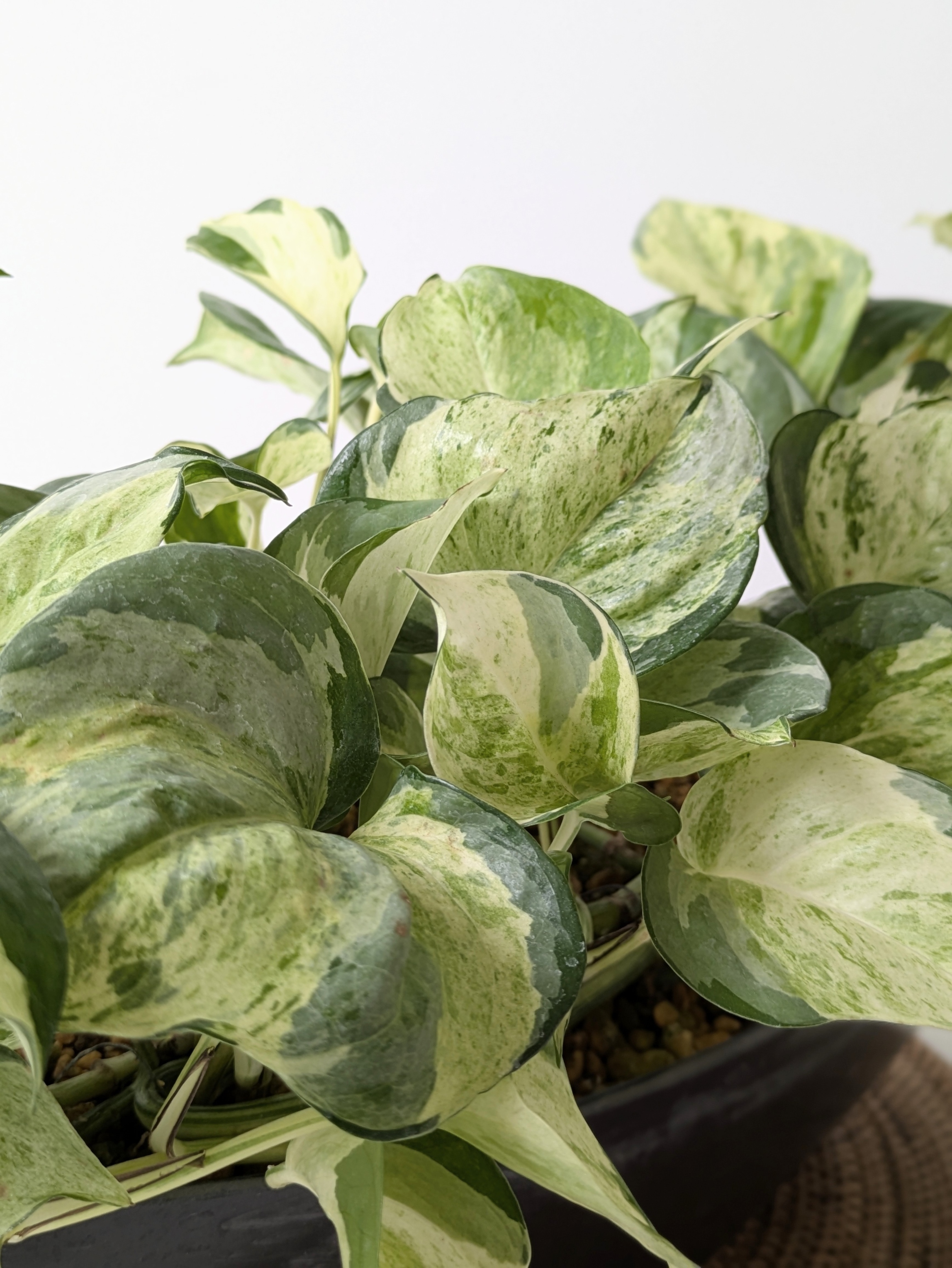 ✿白〜クリーム色の斑が水彩画のように混ざり合い、葉は丸みを帯びてややカールする姿がかわいいポトス『ステータス』♪